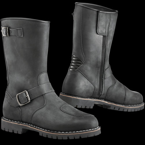 If you have classic taste, the TCX Fuel Waterproof Boots are sure to stoke your fire. Engineer boots were originally designed to have a single piece of leather on the forefoot with minimal exposed seams to protect the engineers feet from rogue hot coals. In the construction of the Fuel Boots, TCX recognized that this still-valid design has a different utility to the modern motorcyclist- the handsomely finished full grain leather upper is backed with a full waterproof lining to repel any sort of weather, water or grime the road throws at you. The TCX Fuel Waterproof Boots are loaded with all the modern moto niceties like reinforced leather shift pads, medial and lateral malleolus discs, toe and heel counter and a grippy lug sole. With a pair of TCX Fuel Waterproof Boots in your closet, you’ ll want to fuel up before every ride.